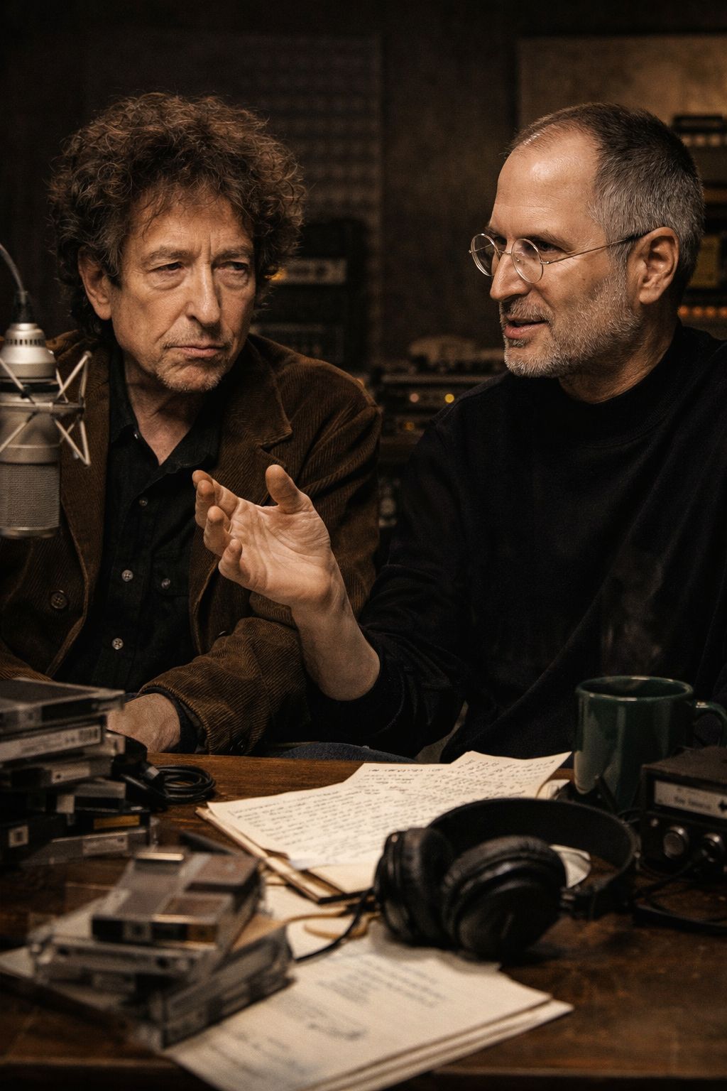 On one side, you have Dylan — a figure whose work has influenced culture, language, and thought. On the other, Jobs — a visionary who reshaped how people interact with technology. Bringing them together in a secret conversation creates the illusion of a hidden blueprint for modern culture.